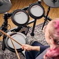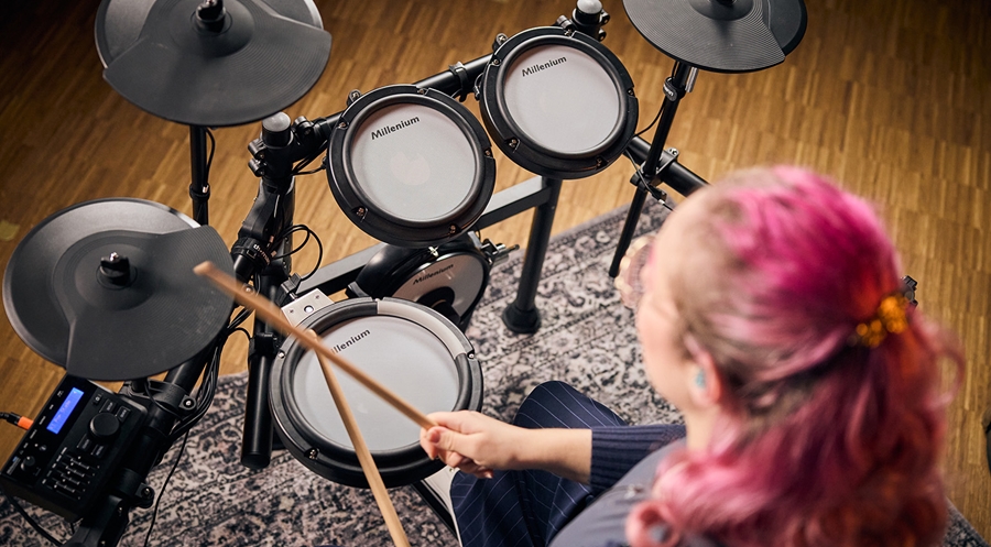Zestaw perkusyjny Millenium MPS-350 to dostępna cenowo opcja e-perkusji, naśladująca w pełni profesjonalne modele Roland/Yamaha. Jeśli chcesz rozpocząć lub kontynuować grę na rozsądnym cenowo instrumencie koniecznie poznaj ten zestaw lepiej! E-Drum łączy nowoczesny design z realistyczną grywalnością i elastycznymi możliwościami podłączania w jednym kompaktowym urządzeniu. Niezależnie od tego, czy ćwiczysz w domu, grasz na próbach, czy występujesz na żywo, ten zestaw zapewnia wszystko, czego potrzebujesz, aby cieszyć się doskonałymi wrażeniami z gry na perkusji. MPS-350 zawiera 8-calowy bęben basowy kompatybilny z podwójnymi pedałami, 8-calowy werbel dwustrefowy z oddzielną strefą crossstick obręczy oraz trzy 7-calowe tomy. Posiada również pady hi-hat, crash i ride, każdy z podwójną strefą i funkcją wyciszania.