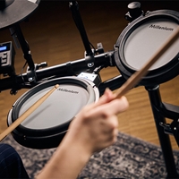 Solidna rama perkusyjna, okablowanie i wydajny moduł dźwiękowy z 500 brzmieniami, 25 zestawami presetów i 35 wbudowanymi utworami sprawiają, że jest to kompletny, gotowy do gry zestaw. Wysokiej jakości naciągi siateczkowe zapewniają ekspresyjne, akustyczne wrażenia z gry. MPS-350 precyzyjnie reaguje na każdy niuans Twojej gry, od „ghostów” po mocne uderzenia. Dynamiczne wyzwalanie zapewnia naturalny odgłos i autentyczne wrażenia, dzięki czemu idealnie nadaje się do realistycznych ćwiczeń i ekspresyjnych występów. Dzięki wbudowanemu Bluetooth, AUX-IN, USB/MIDI i gniazdu słuchawkowemu 3,5 mm, MPS-350 zapewnia pełną łączność. Graj do ulubionych utworów, nagrywaj bezpośrednio do DAW lub ćwicz cicho ze słuchawkami. Dodatkowe wejście na crash pozwala na łatwą rozbudowę, dzięki czemu jest idealny dla kreatywnych perkusistów, którzy chcą rozbudować swój zestaw.