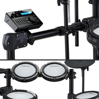 Solidna rama perkusyjna, okablowanie i wydajny moduł dźwiękowy z 500 brzmieniami, 25 zestawami presetów i 35 wbudowanymi utworami sprawiają, że jest to kompletny, gotowy do gry zestaw. Wysokiej jakości naciągi siateczkowe zapewniają ekspresyjne, akustyczne wrażenia z gry. MPS-350 precyzyjnie reaguje na każdy niuans Twojej gry, od „ghostów” po mocne uderzenia. Dynamiczne wyzwalanie zapewnia naturalny odgłos i autentyczne wrażenia, dzięki czemu idealnie nadaje się do realistycznych ćwiczeń i ekspresyjnych występów. Dzięki wbudowanemu Bluetooth, AUX-IN, USB/MIDI i gniazdu słuchawkowemu 3,5 mm, MPS-350 zapewnia pełną łączność. Graj do ulubionych utworów, nagrywaj bezpośrednio do DAW lub ćwicz cicho ze słuchawkami. Dodatkowe wejście na crash pozwala na łatwą rozbudowę, dzięki czemu jest idealny dla kreatywnych perkusistów, którzy chcą rozbudować swój zestaw.