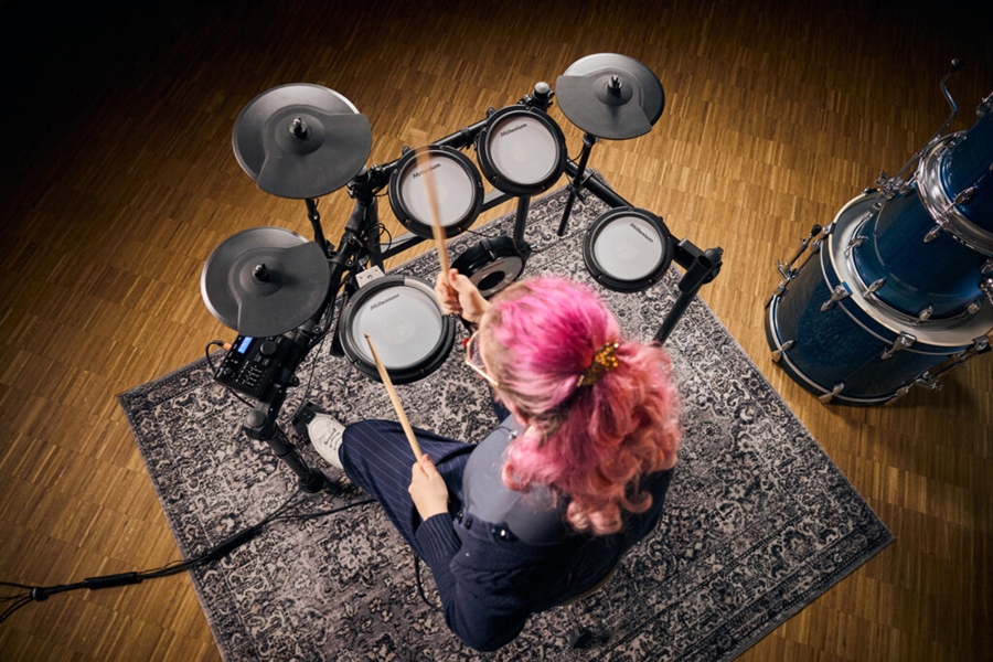 Solidna rama perkusyjna, okablowanie i wydajny moduł dźwiękowy z 500 brzmieniami, 25 zestawami presetów i 35 wbudowanymi utworami sprawiają, że jest to kompletny, gotowy do gry zestaw. Wysokiej jakości naciągi siateczkowe zapewniają ekspresyjne, akustyczne wrażenia z gry. MPS-350 precyzyjnie reaguje na każdy niuans Twojej gry, od „ghostów” po mocne uderzenia. Dynamiczne wyzwalanie zapewnia naturalny odgłos i autentyczne wrażenia, dzięki czemu idealnie nadaje się do realistycznych ćwiczeń i ekspresyjnych występów. Dzięki wbudowanemu Bluetooth, AUX-IN, USB/MIDI i gniazdu słuchawkowemu 3,5 mm, MPS-350 zapewnia pełną łączność. Graj do ulubionych utworów, nagrywaj bezpośrednio do DAW lub ćwicz cicho ze słuchawkami. Dodatkowe wejście na crash pozwala na łatwą rozbudowę, dzięki czemu jest idealny dla kreatywnych perkusistów, którzy chcą rozbudować swój zestaw.